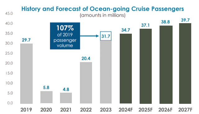 Looking ahead, J.P. Morgan Research estimates the cruise industry will capture ~3.8% of the $1.9T global vacation market by 2028.